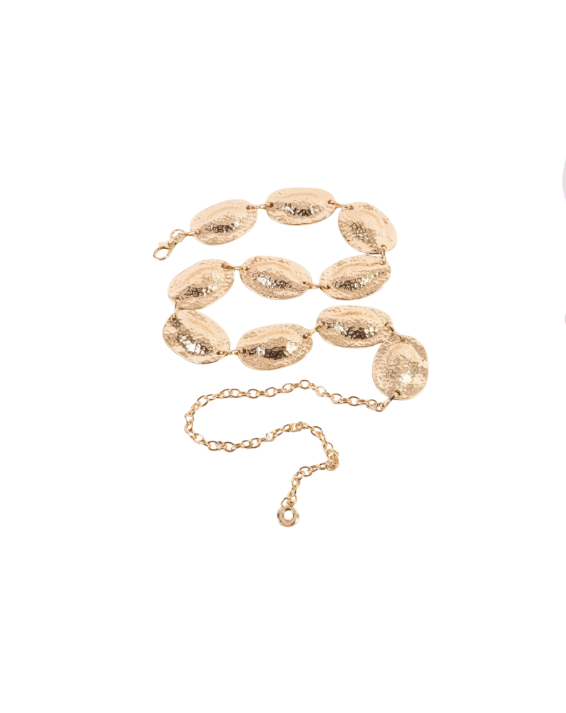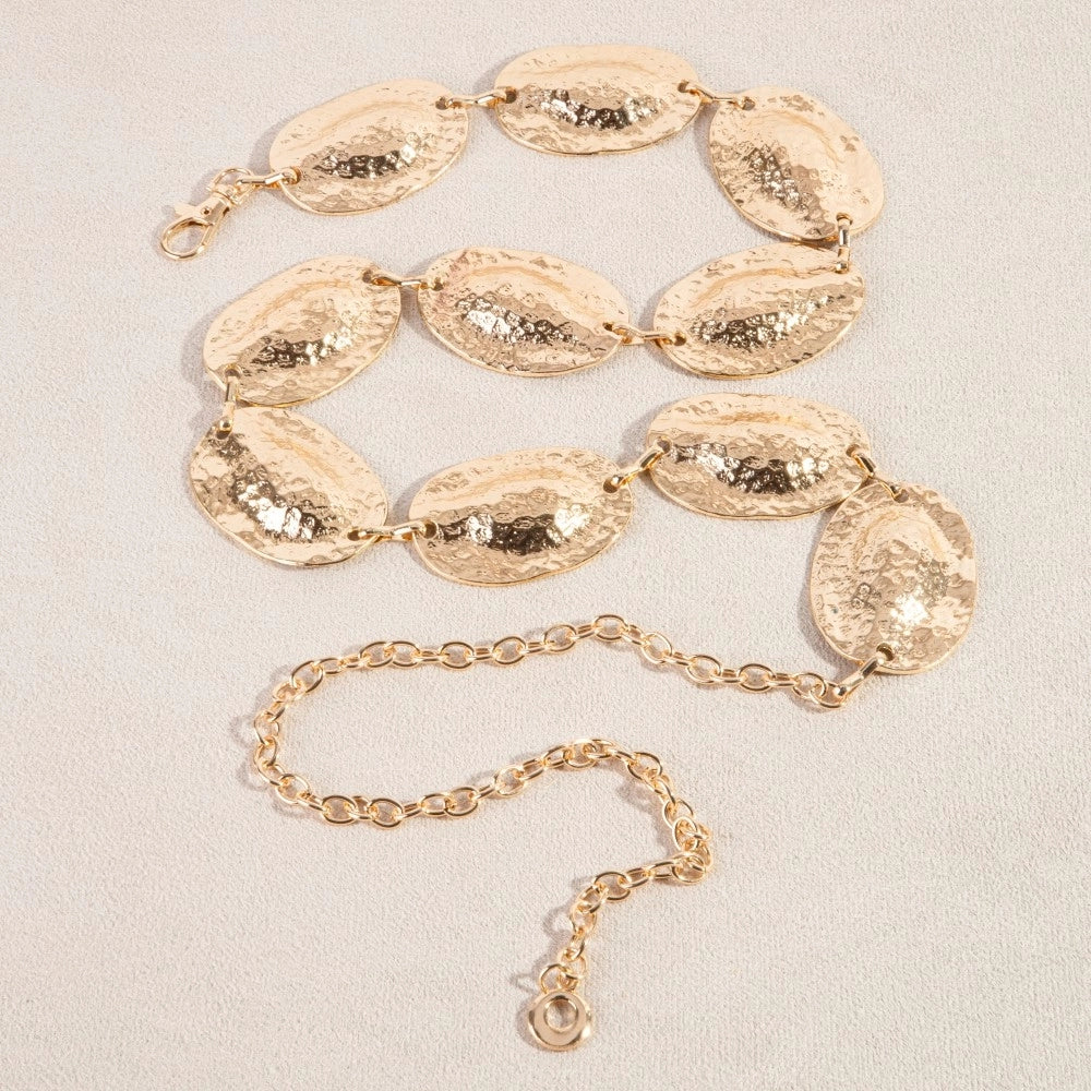 HAMMERED OVAL DISC CHAIN BELT-GOLD