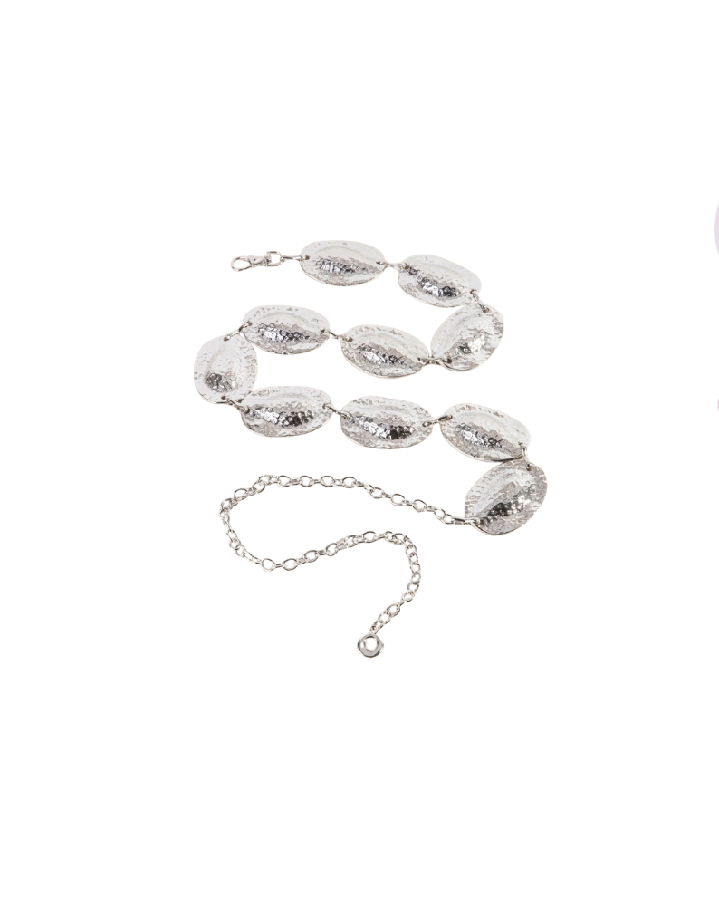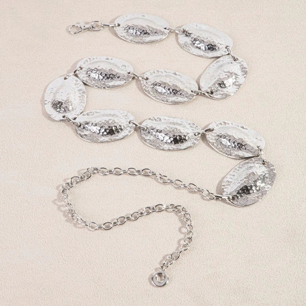 HAMMERED OVAL DISC CHAIN BELT-SILVER