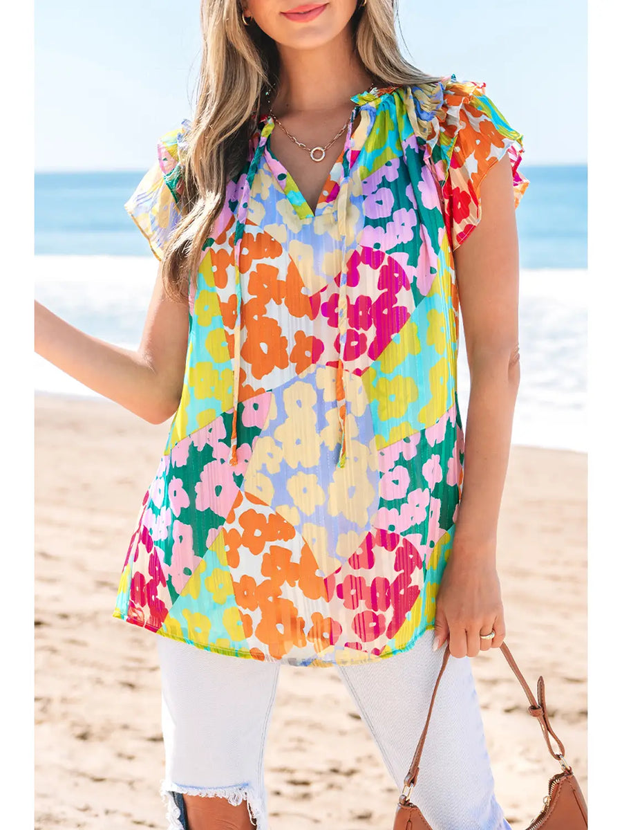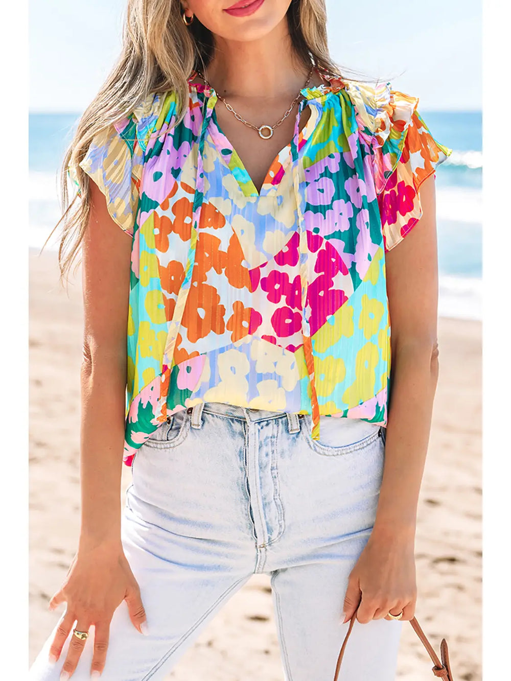 LEOPARD PRINT RUFFLED V-NECK BLOUSE-MULTI