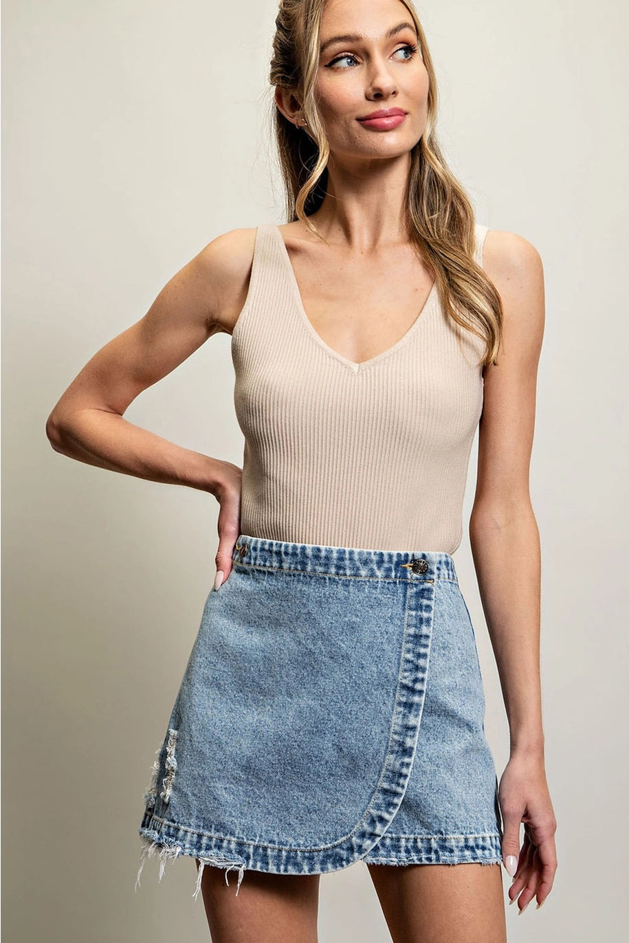 RIBBED RUFFLE KNIT TANK TOP-CHAMBRAY