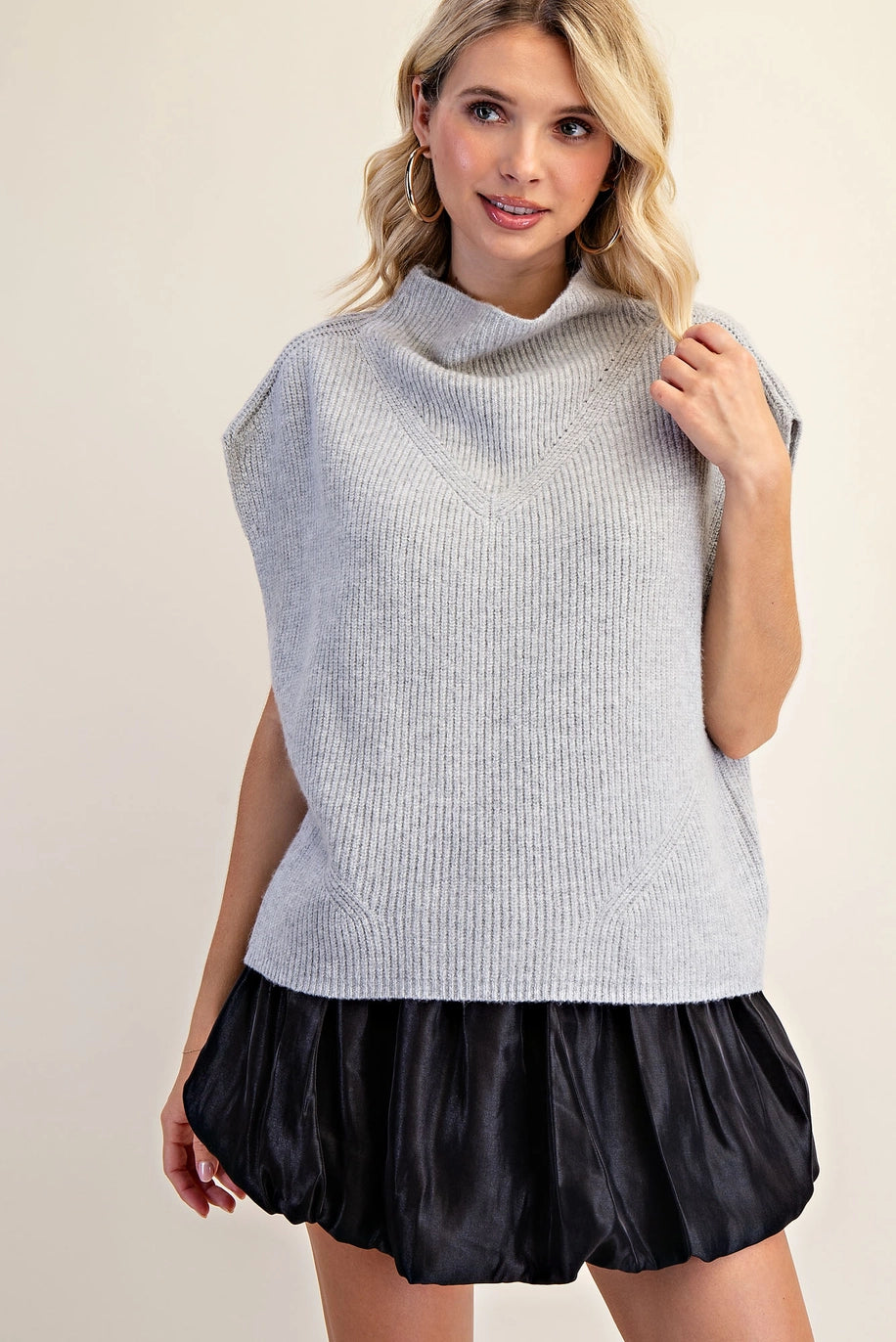 CONTRAST CHEVRON KNIT SWEATER TANK-SKY BLUE