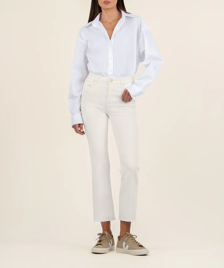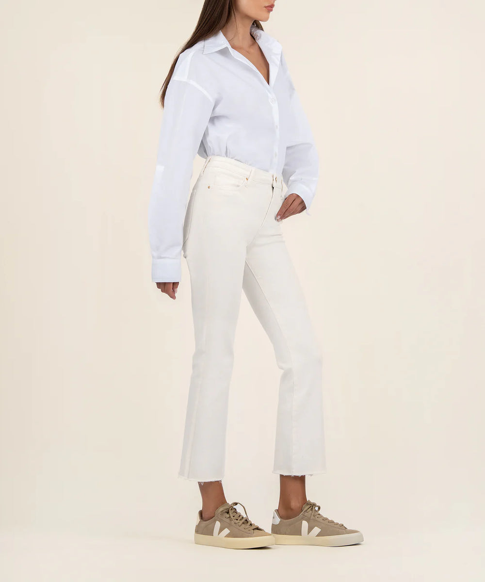 KELSEY HIGH RISE ANKLE FLARE WITH RAW HEM-ECRU