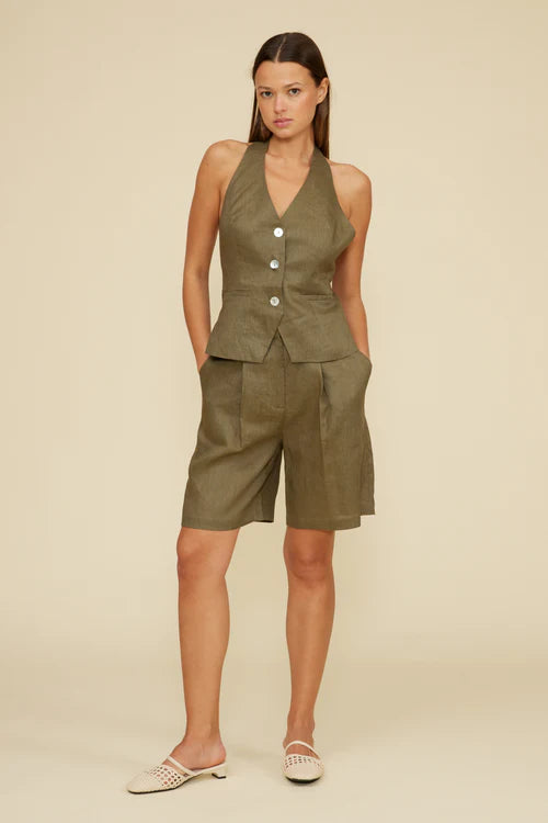 HIGH WAIST GROMMET DETAIL SKORT-BLACK