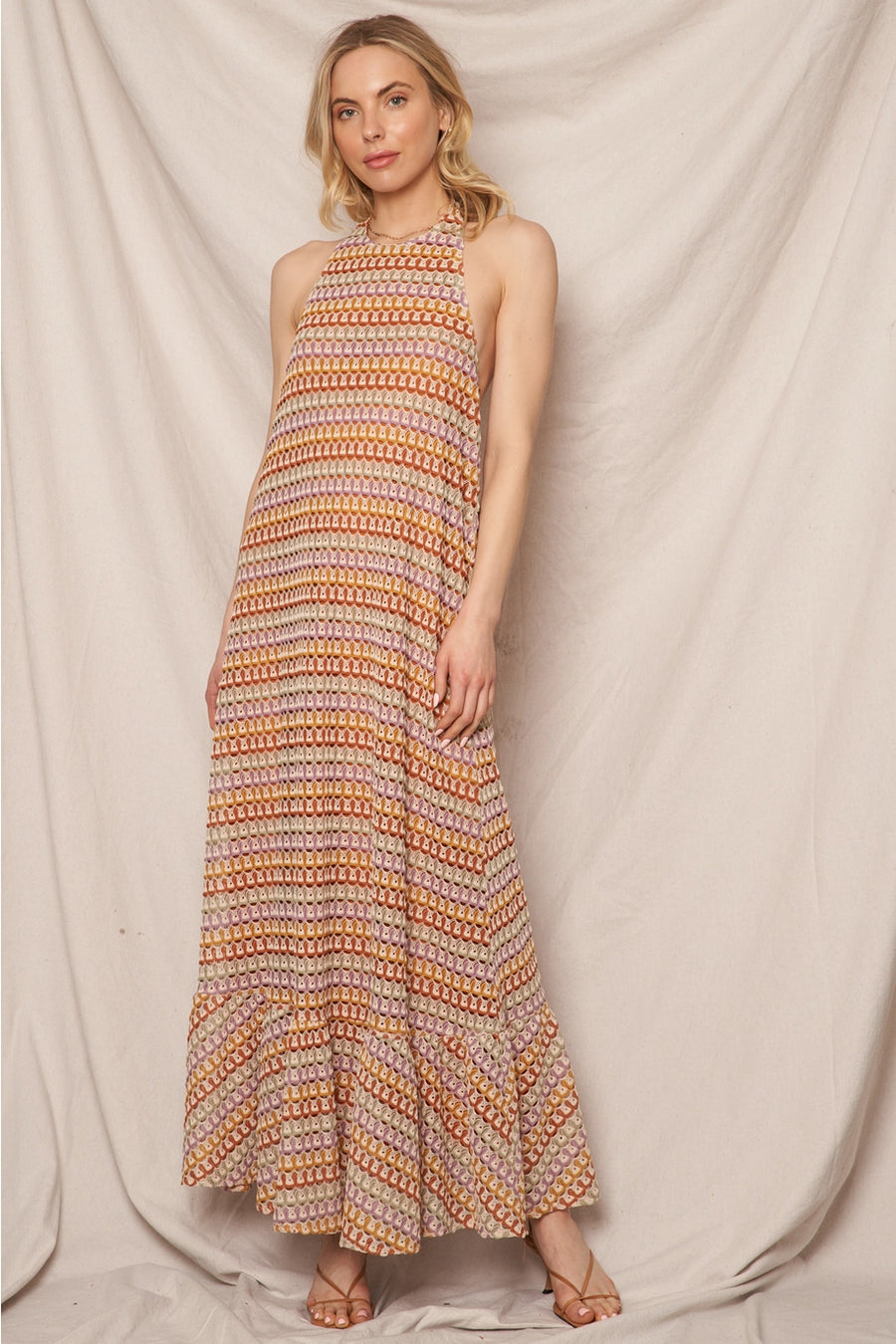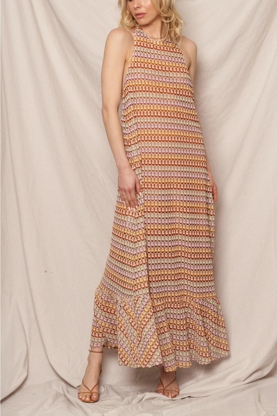 HALTER NECK CROCHET MAXI DRESS-MULTI