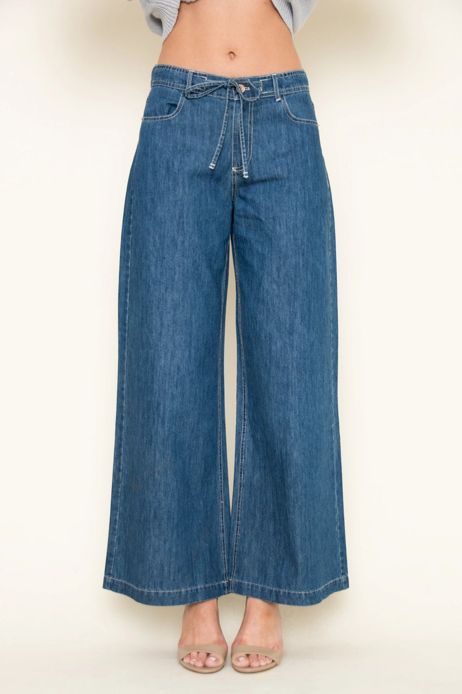 DRAWSTRING WIDE LEG PANT-DARK DENIM