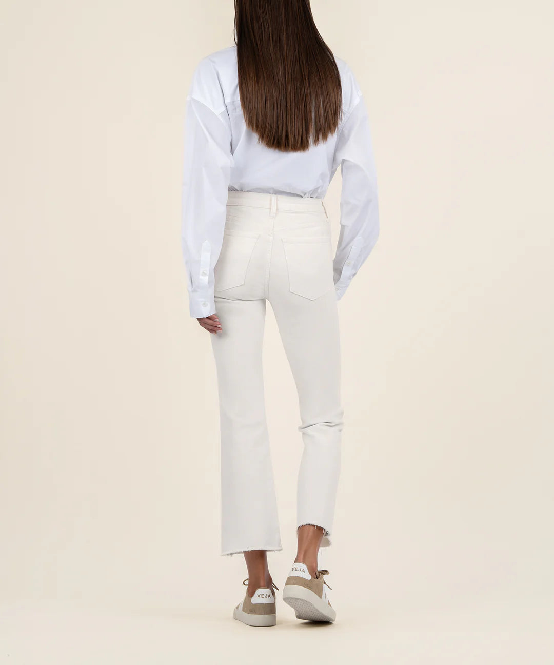 KUT From the Kloth Ecru Kelsey High Rise Ankle Flare With Raw Hem