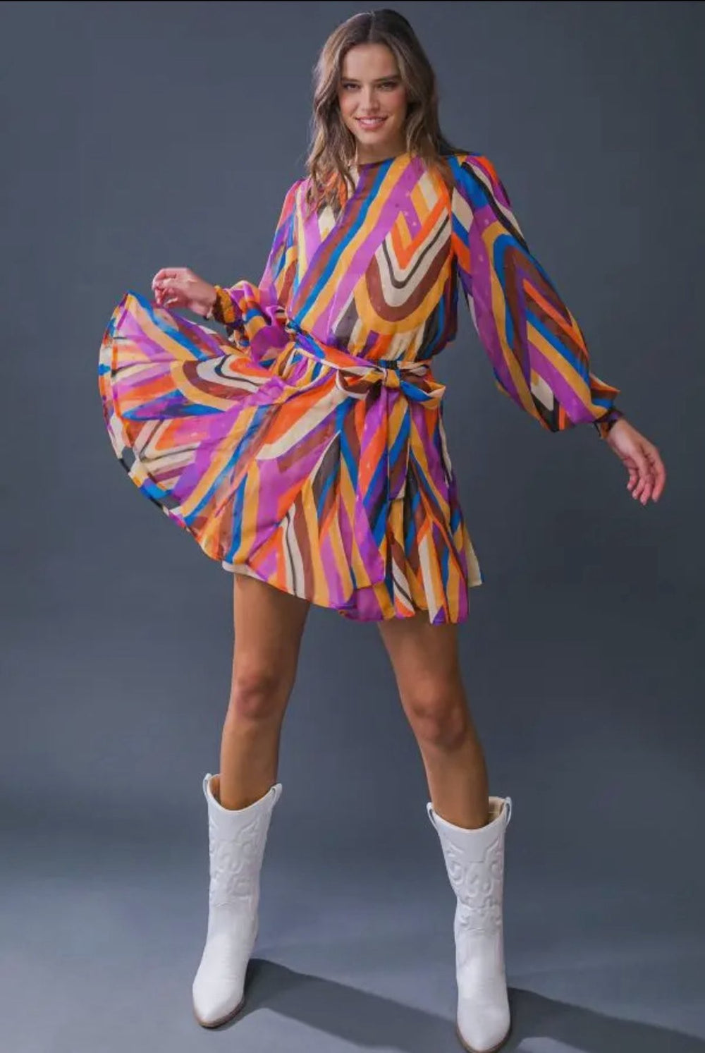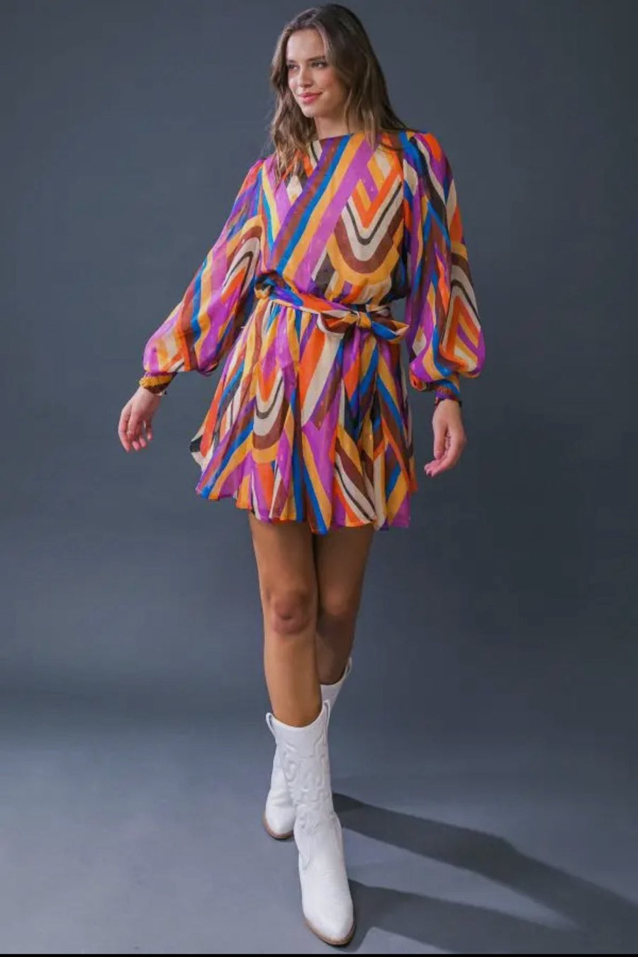 KENSIE PRINTED WOVEN MINI DRESS-RUST/MAGENTA