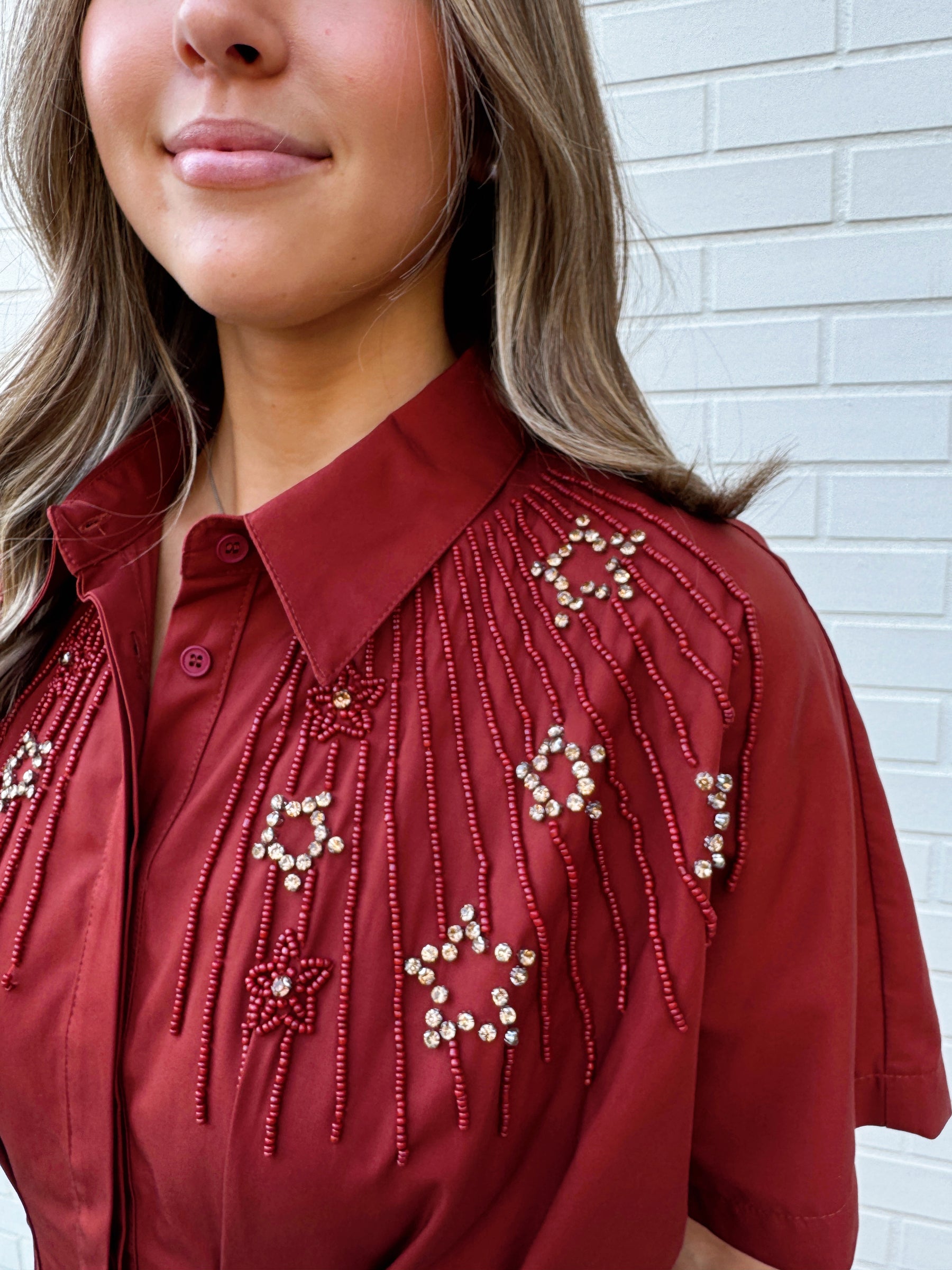 - Rhinestone bead detail