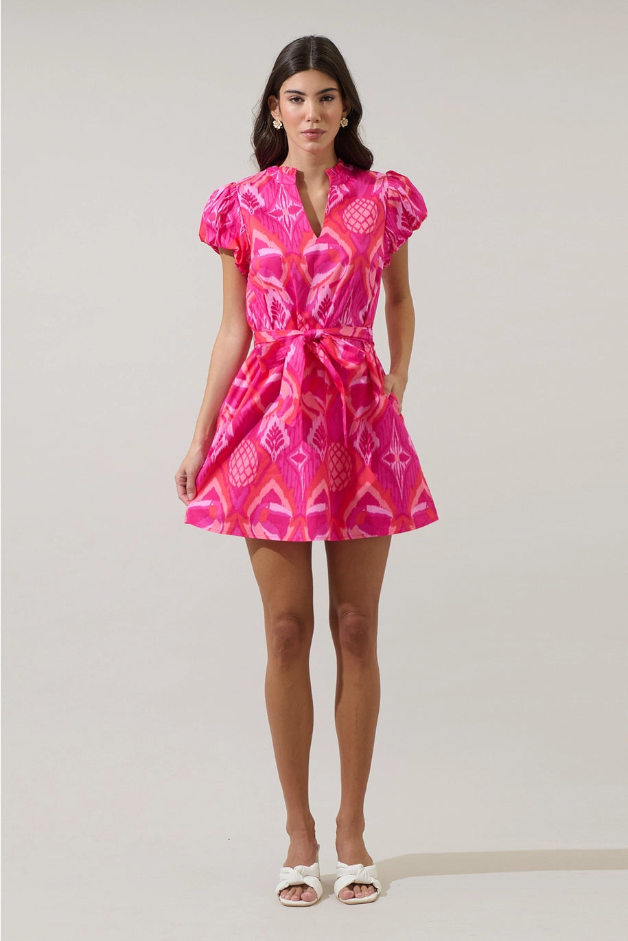 Sugarlips Magenta/Coral Prissa Ikat Orela Mini Dress