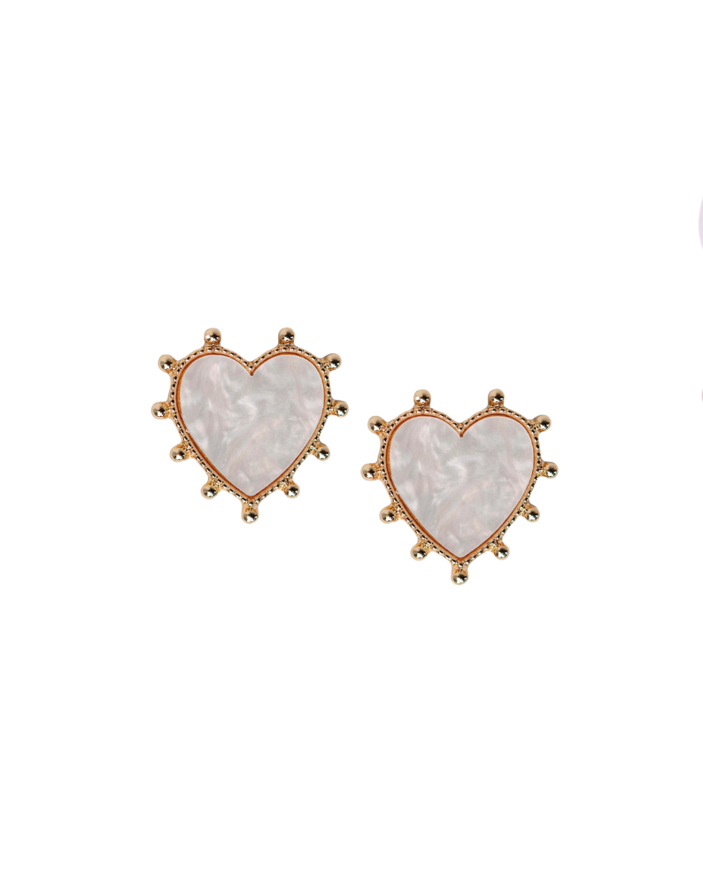 STUDDED PINK TORTOISE VALENTINES HEART EARRINGS-GOLD