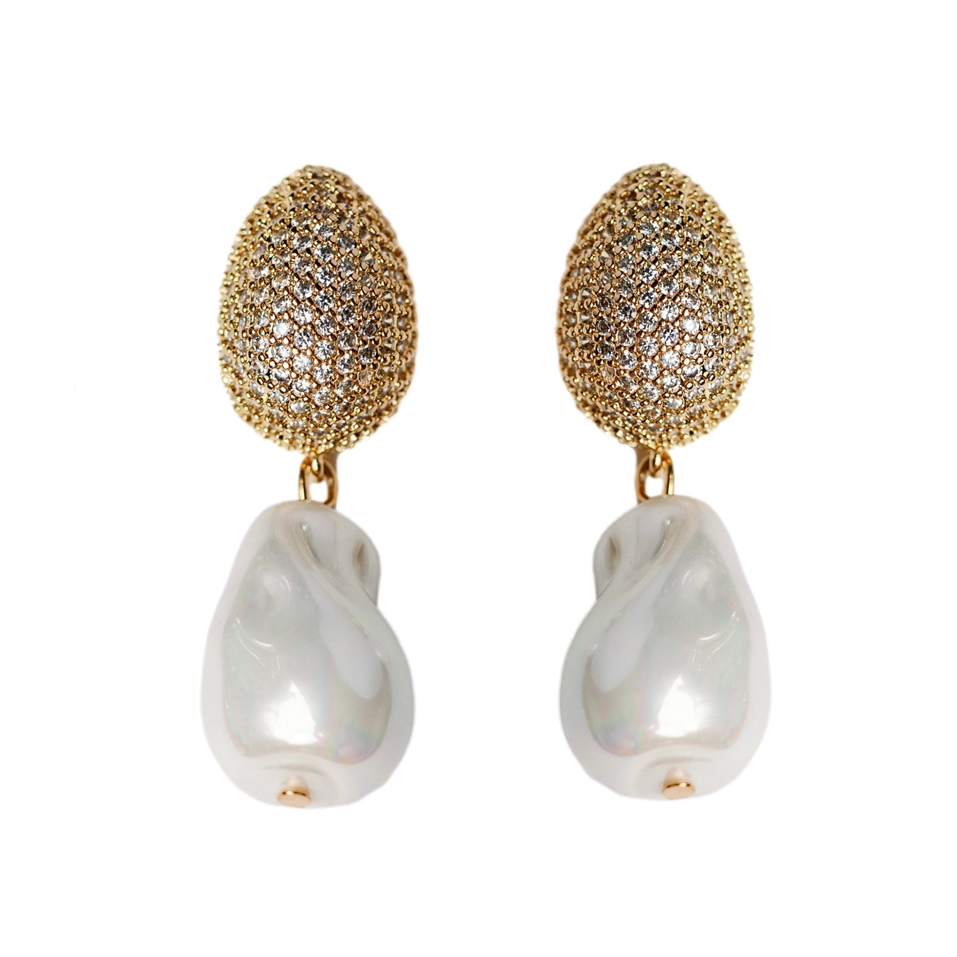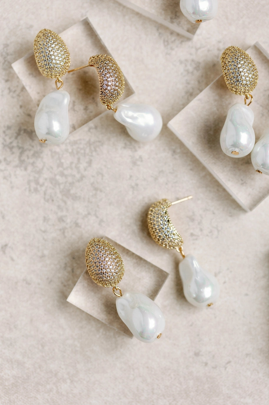 St. Armands Designs Gold/Pearl Sparkling Vintage Chunky Earrings
