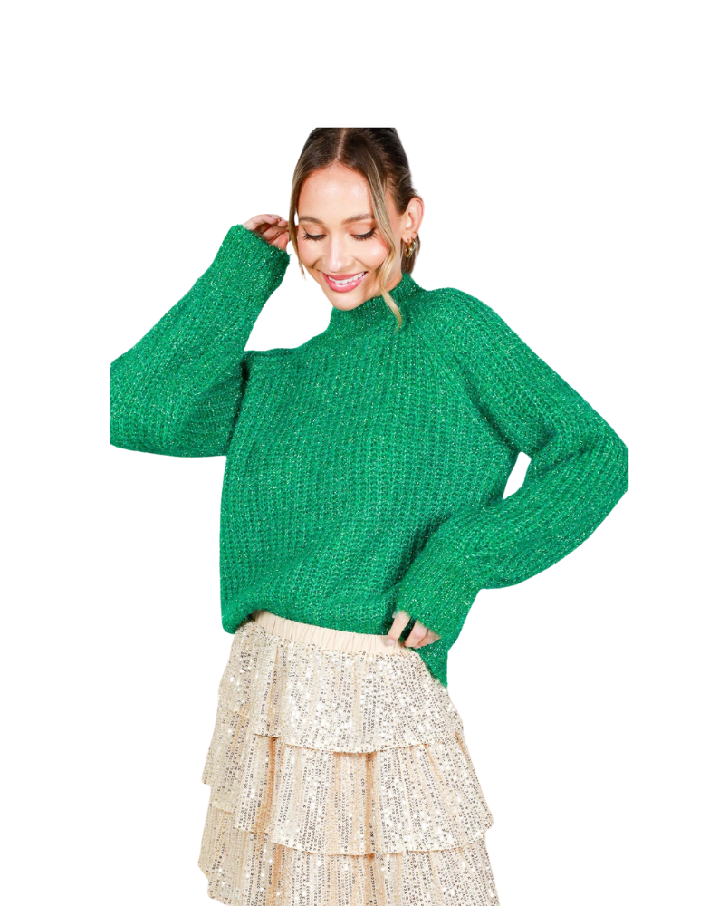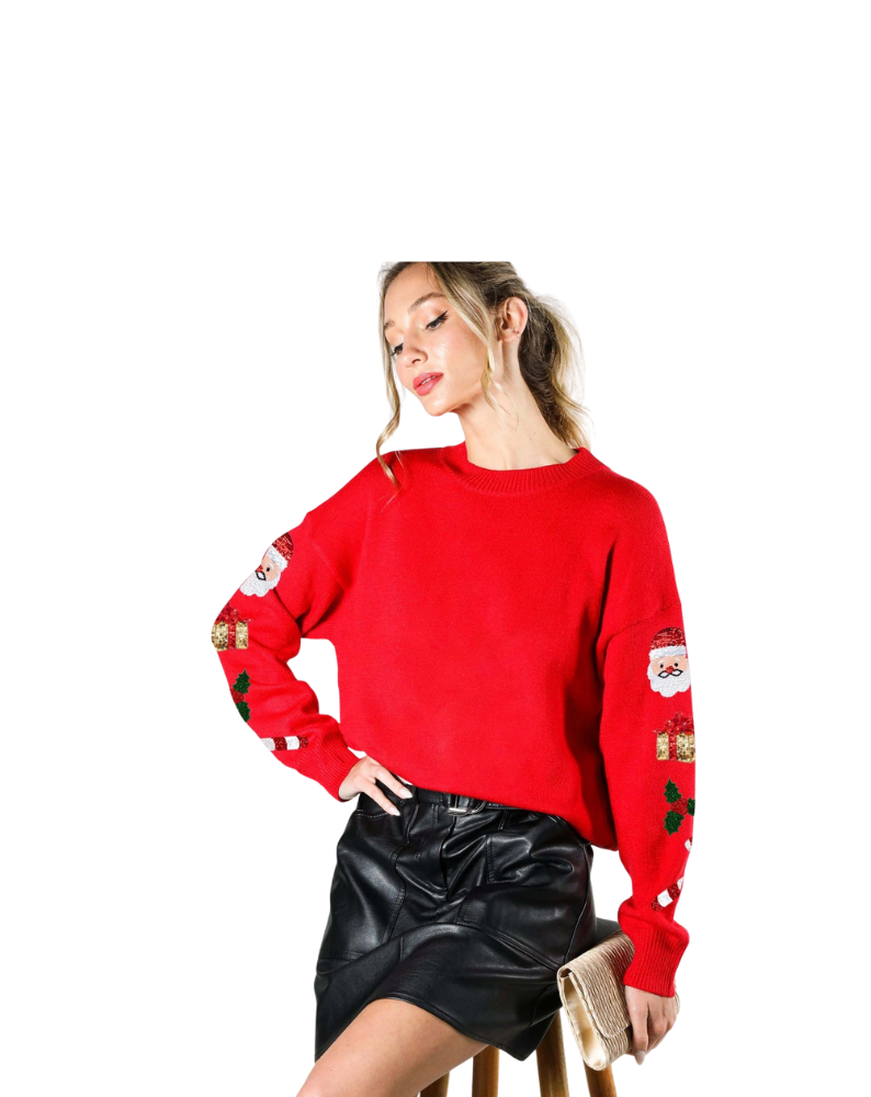 CREW NECK SEQUIN HOLIDAY SWEATER-RED