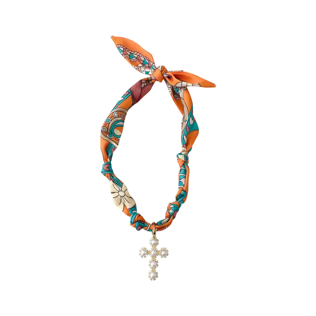 SCARF & HEART CHARM NECKLACE-ORANGE/GOLD