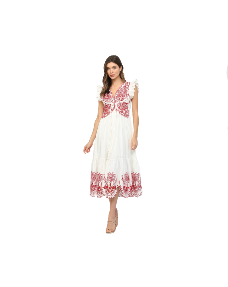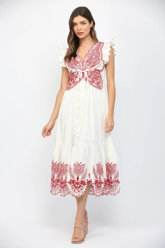 CUT OUT EMBROIDERED DETAIL MAXI DRESS- OFF WHITE