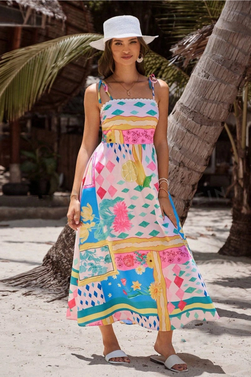 HALTER NECK CROCHET MAXI DRESS-MULTI