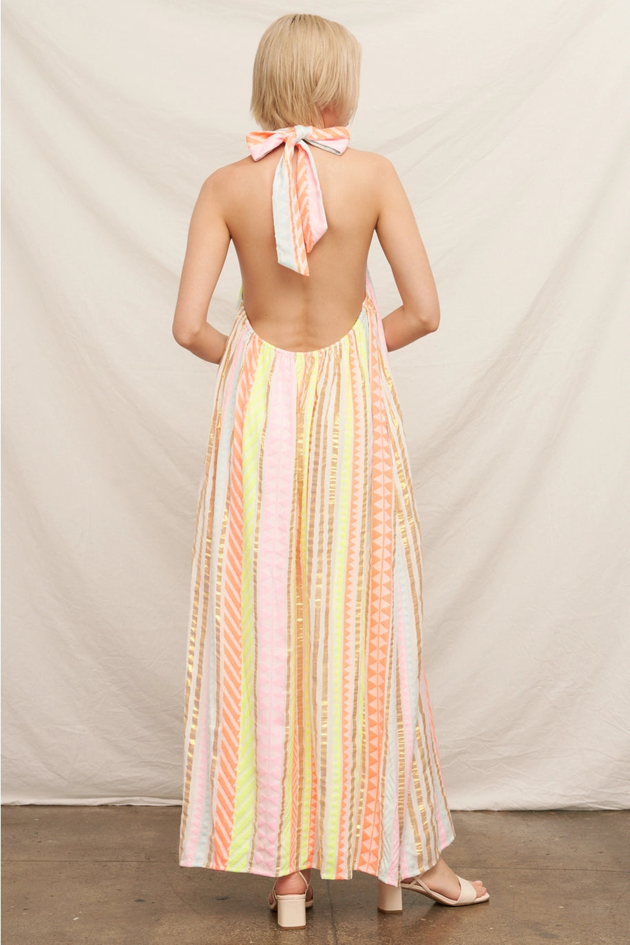 En Creme Pink Neon  Lurex Halter Neck Maxi Dress