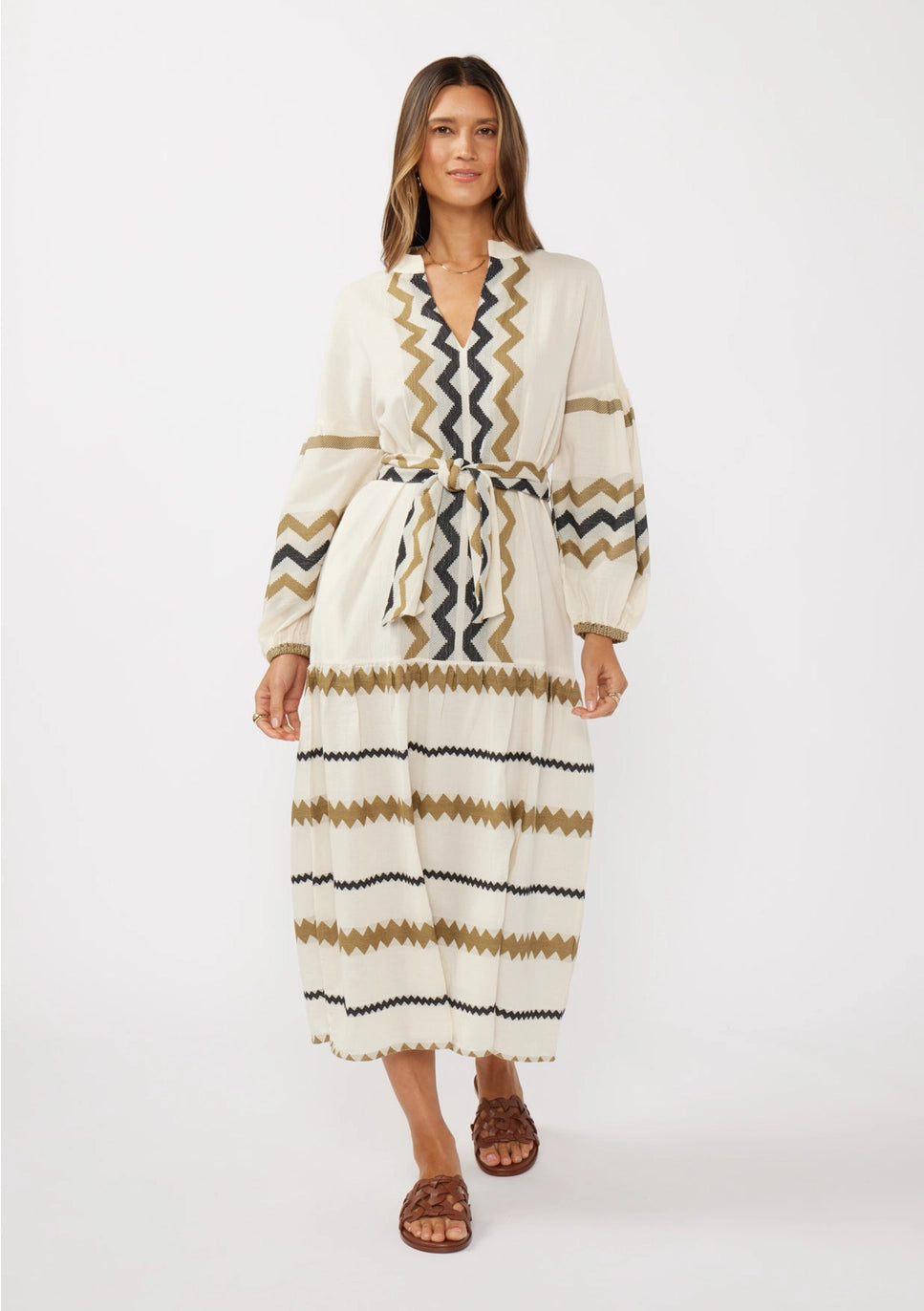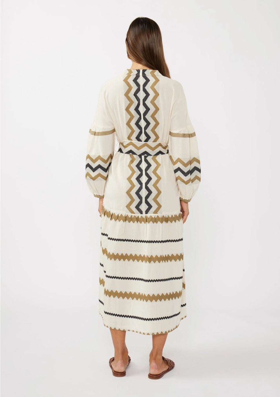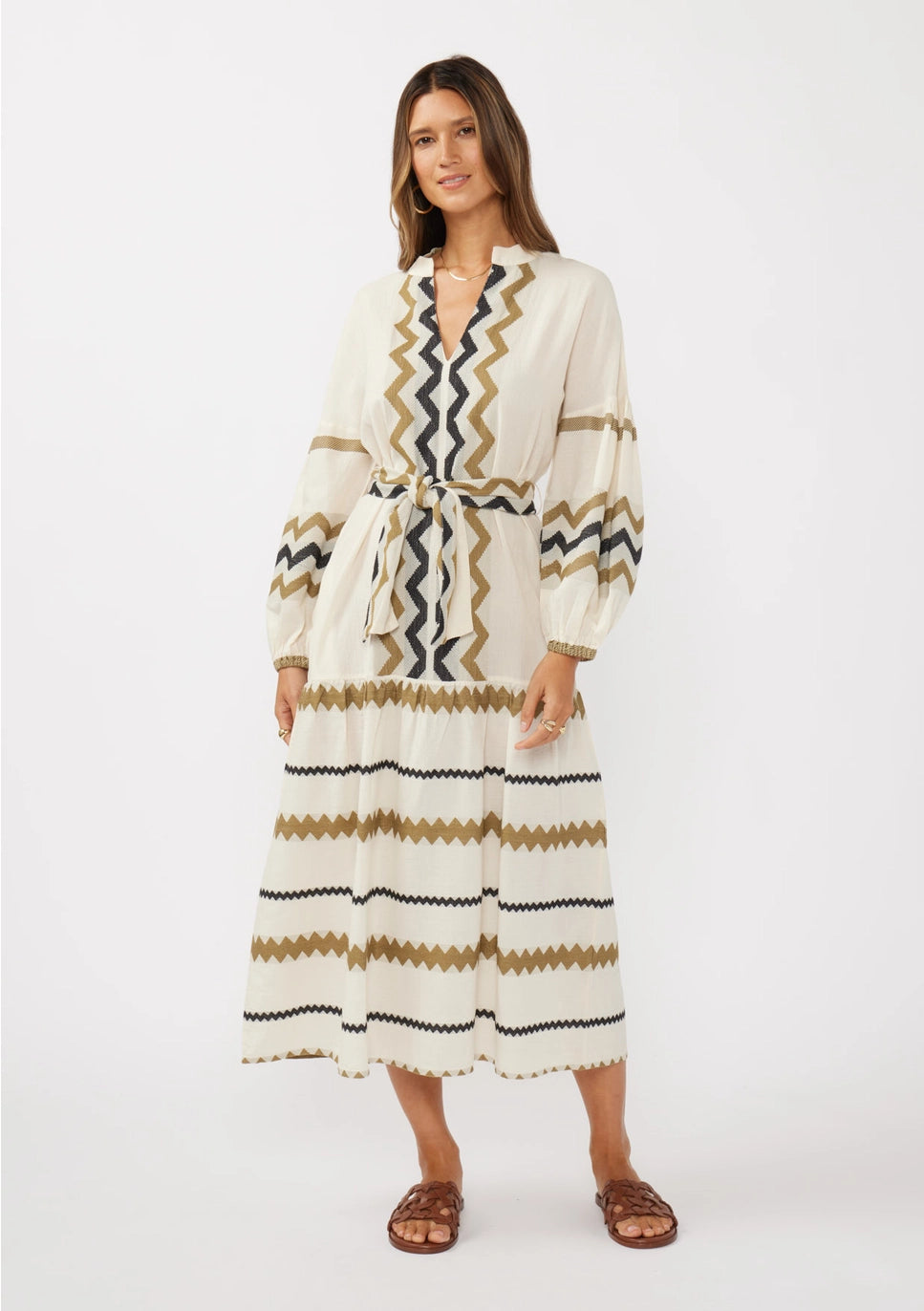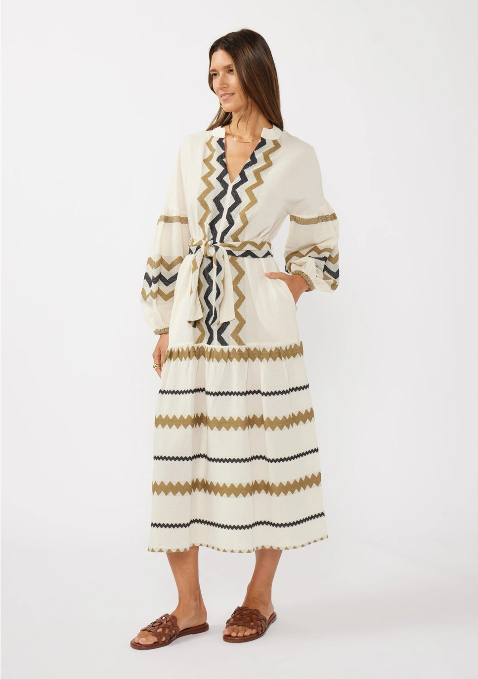 Lovestitch Natural/Khaki Blouson Sleeve maxi dress