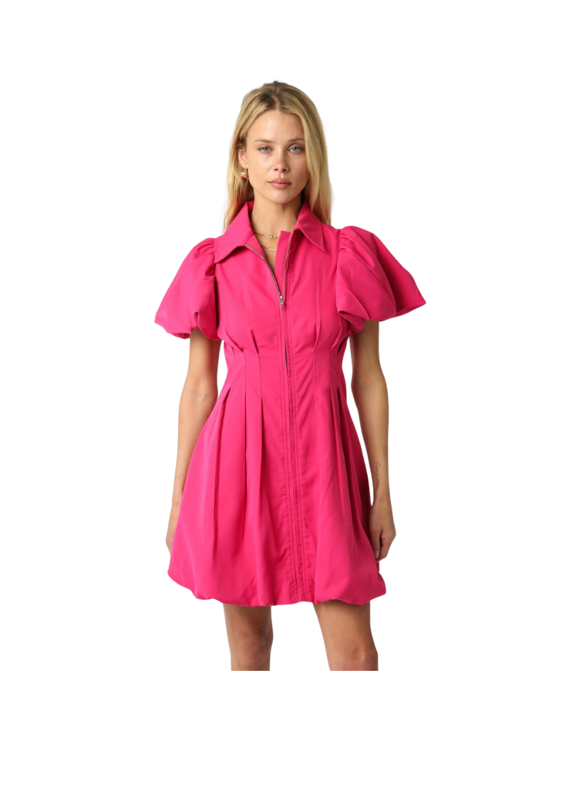 VOLUMINOUS RUFFLE HEM MINI DRESS-HOT PINK
