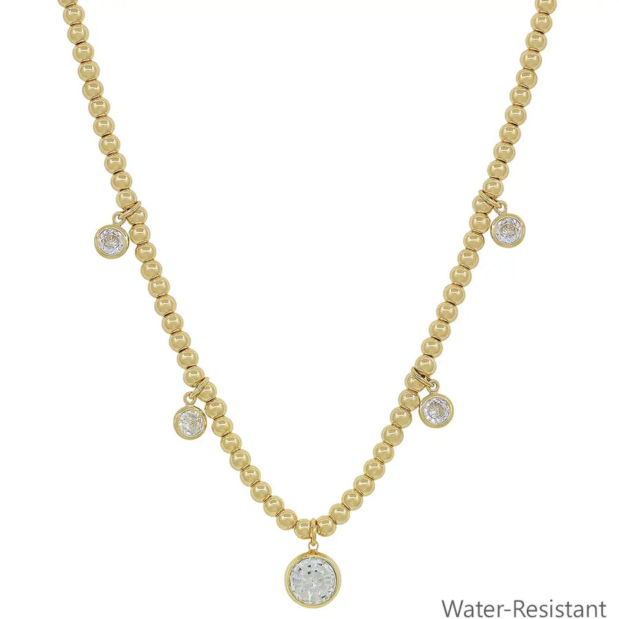 BEAD AND GRADUATED CRYSTAL CIRCLE CHARM NECKLACE-GOLD