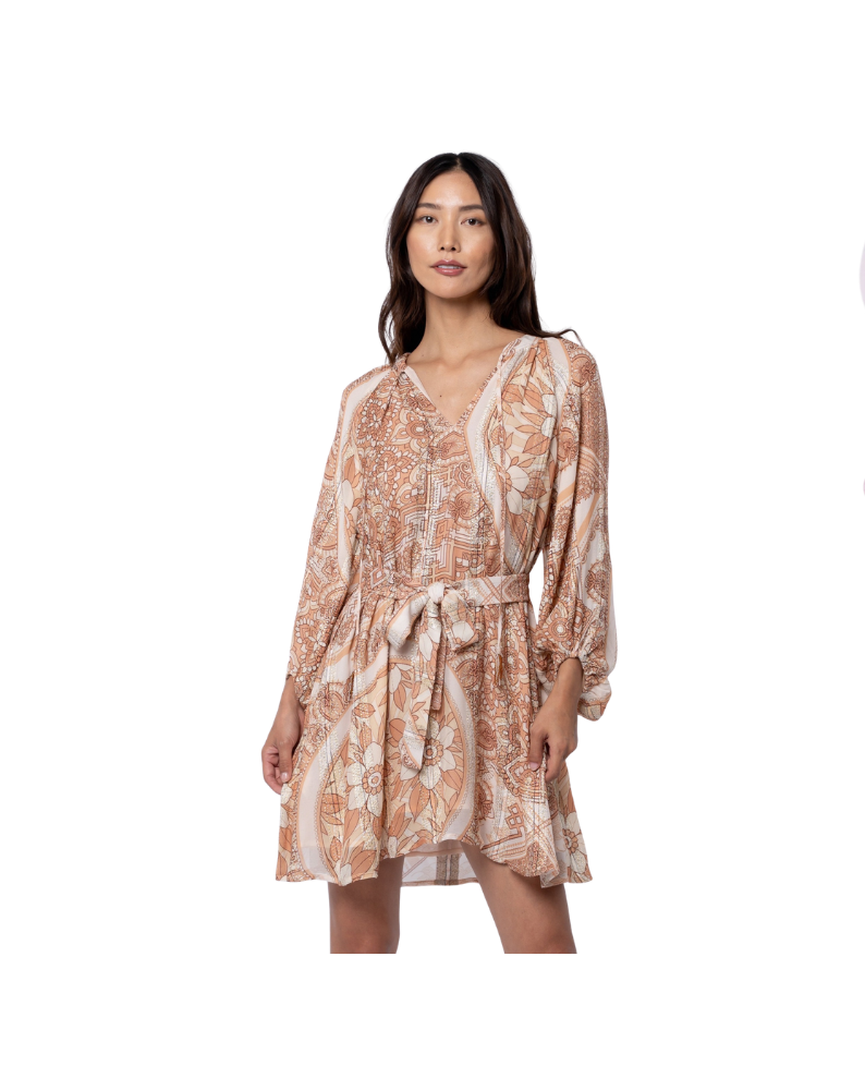 Ciebon Taupe/Multi Sonia Metallic Print Mini Dress