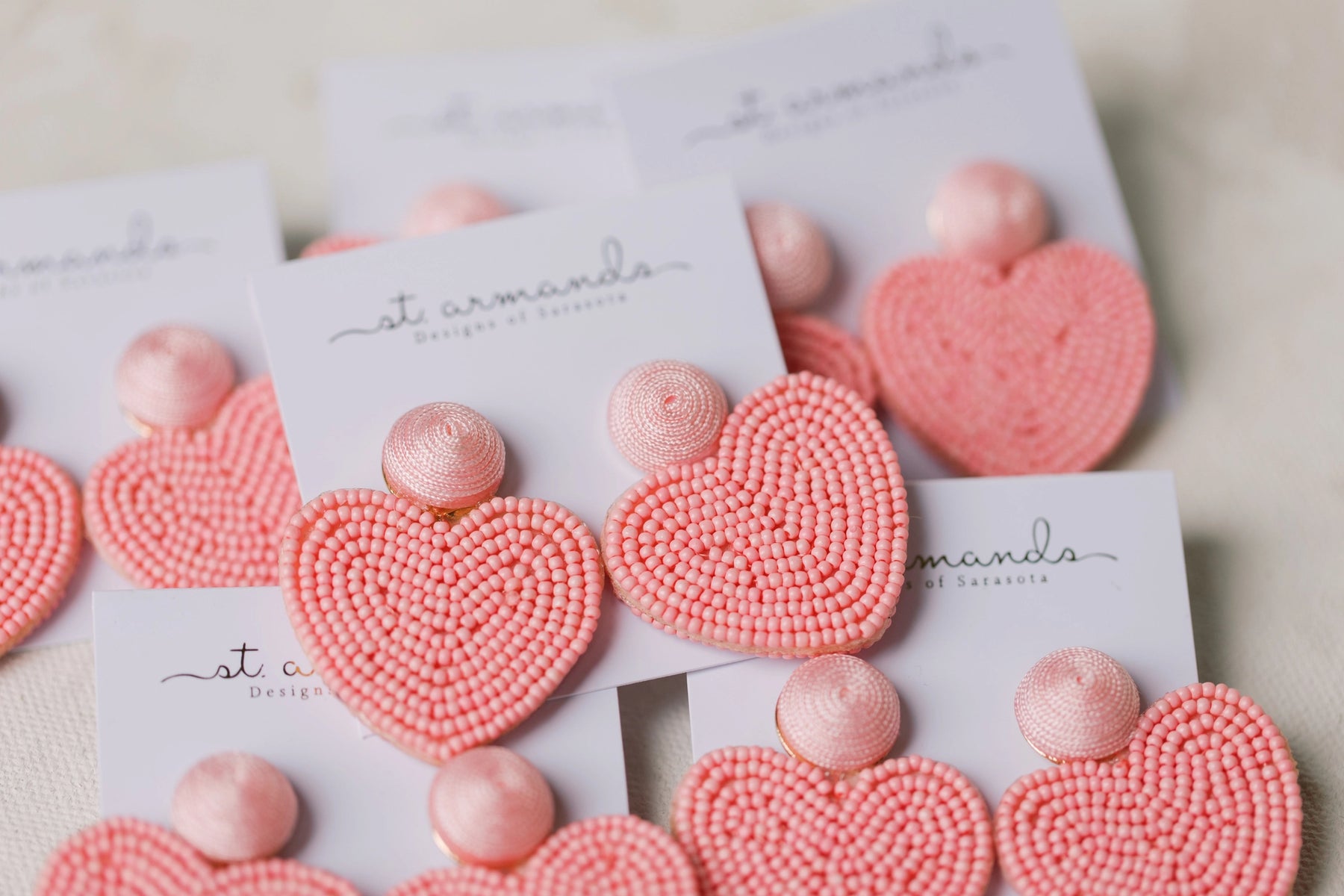 St. Armands of Sarasota Pink Valentines Day Holiday Beaded Heart Earrings