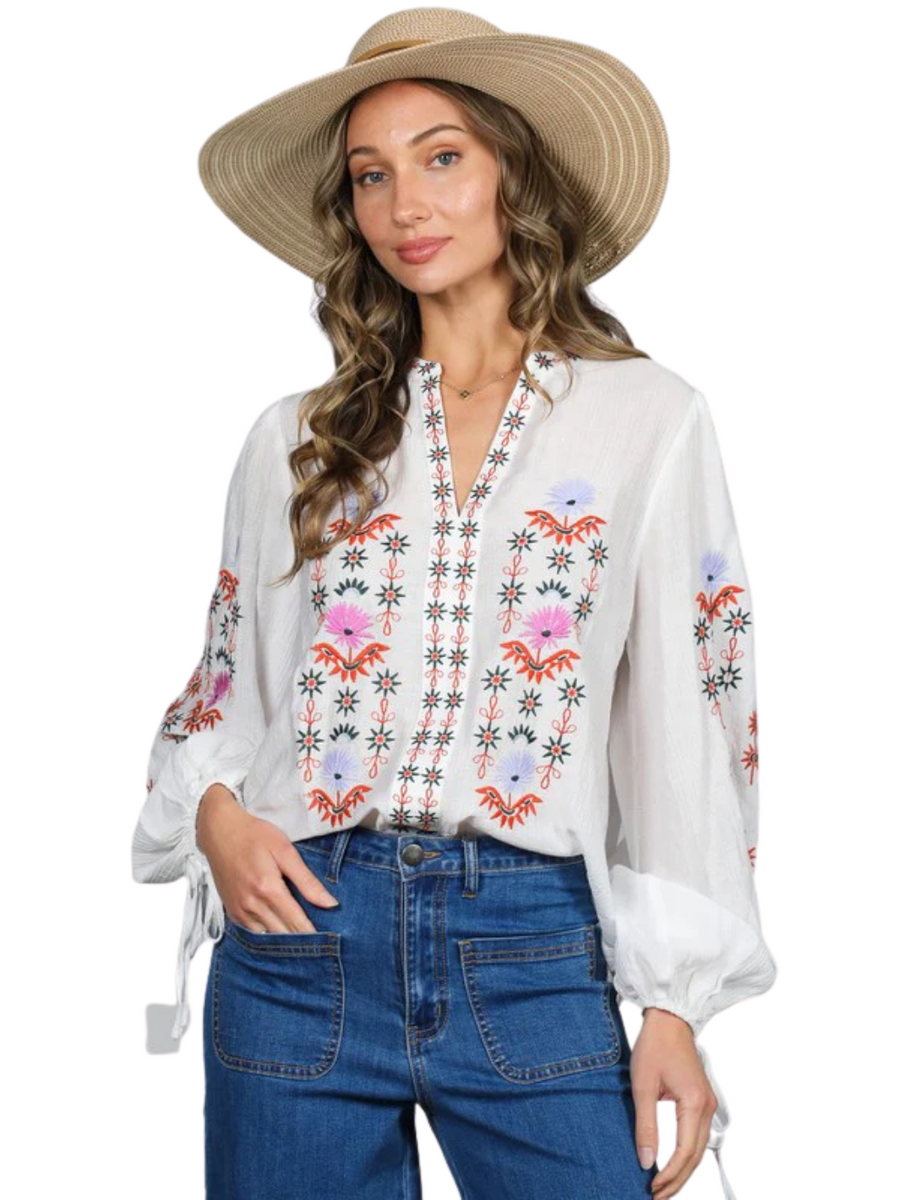 LONG SLEEVE EMBROIDERED BLOUSE-OFF WHITE