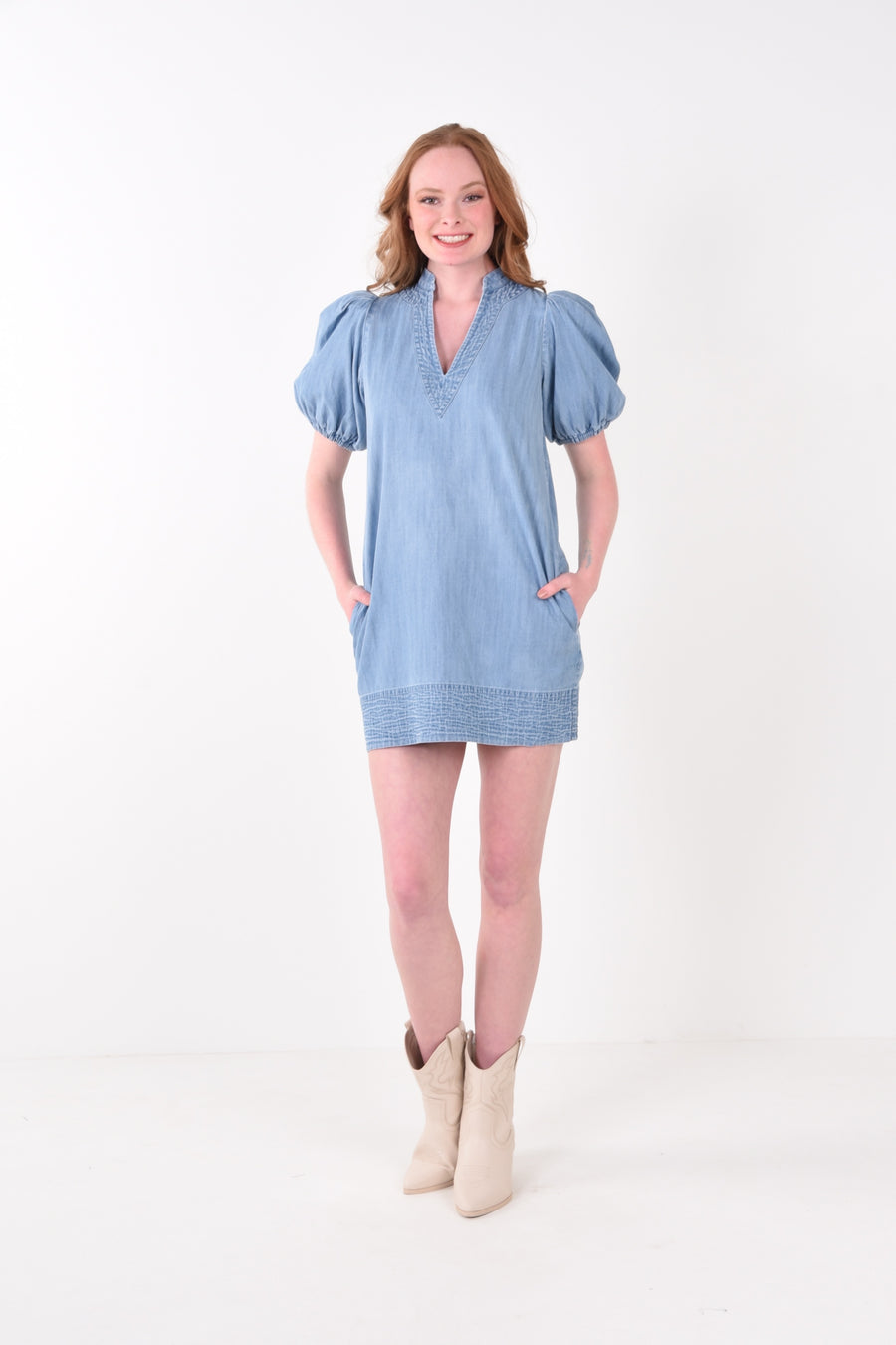 FLUTTER SLEEVE POPLIN DRESS-RED