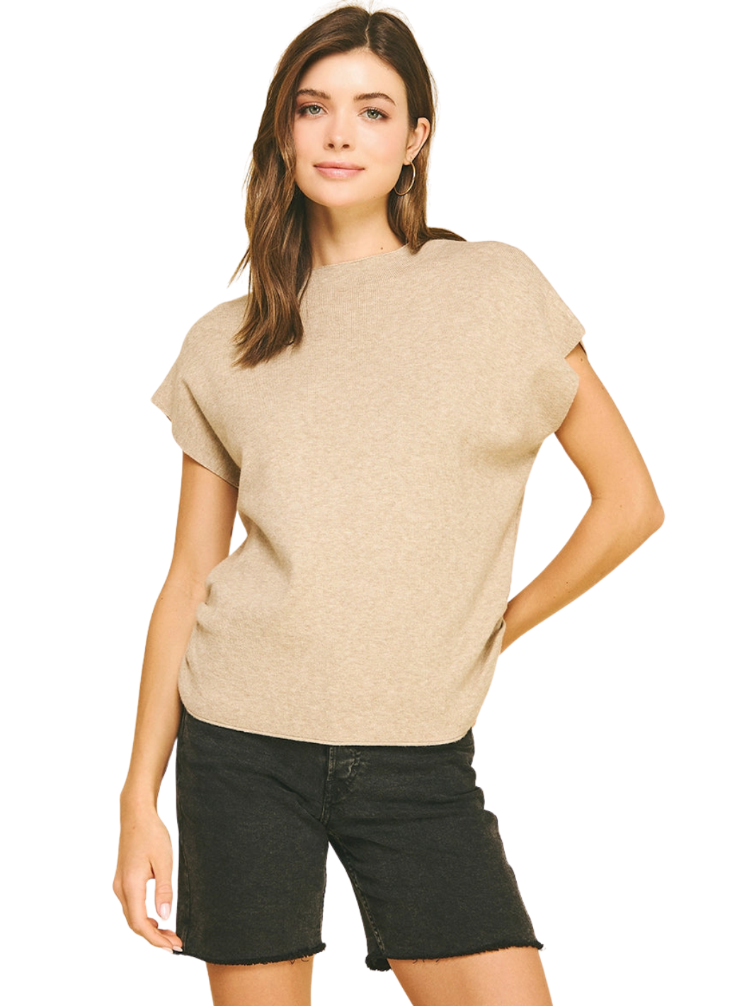 ITALIAN KNIT SLEEVELESS MOCK NECK TOP-CLASSIC BEIGE