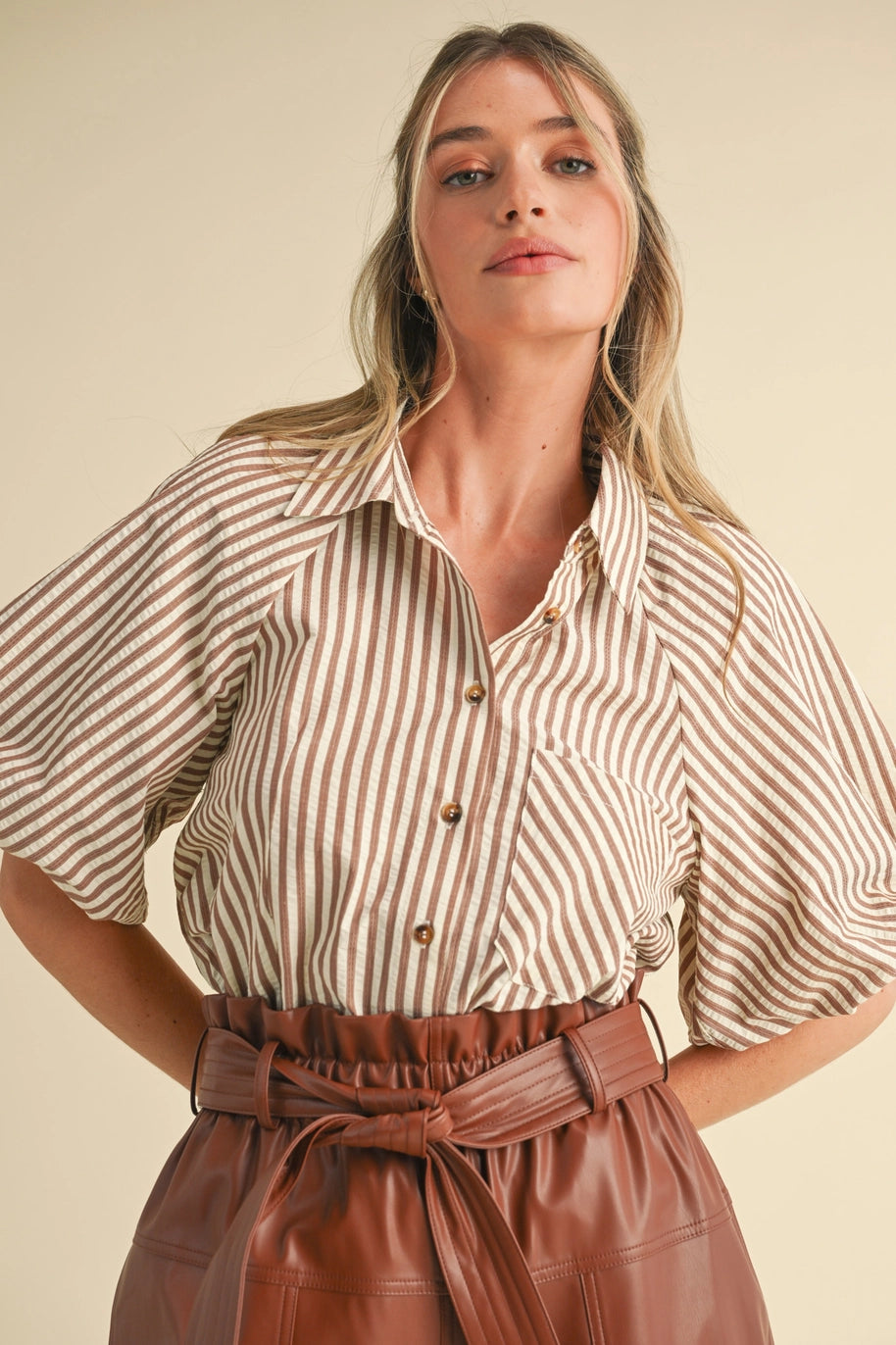 DOLMAN SLEEVE LACE UP-MOCHA