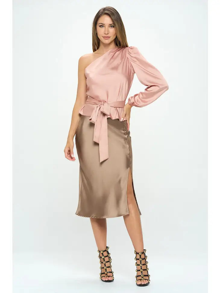 SILKY SLIP SKIRT WITH LACE WAISTBAND-DUSTY ROSE