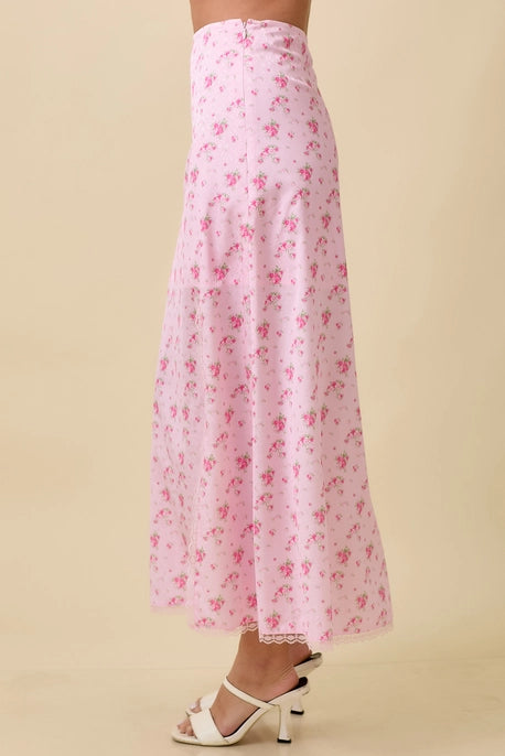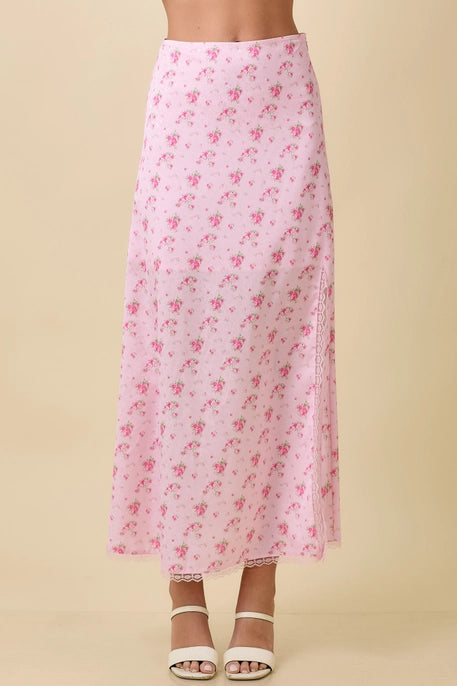 Main Strip Pink Floral Printed Midi Skirt