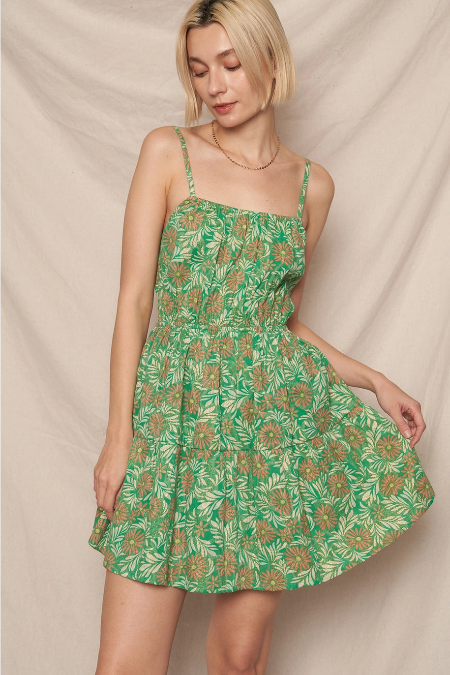 FLORAL PRINT LUREX MINI DRESS-GREEN