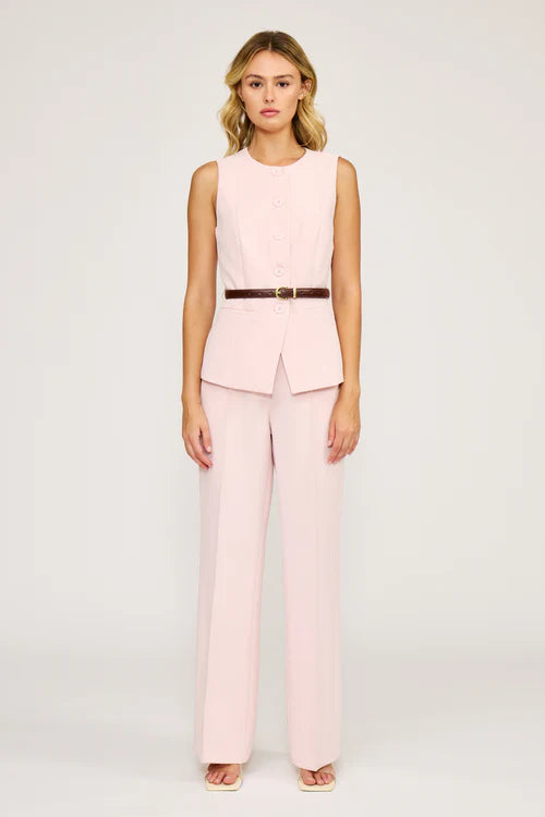 ANNA BELTED VEST-PINK
