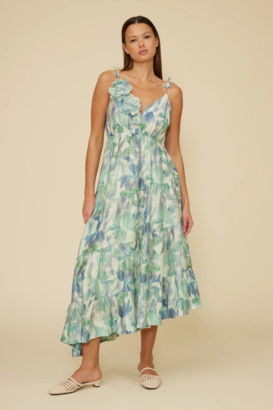 MORET FLARED DRESS-TURQUOISE FLORAL
