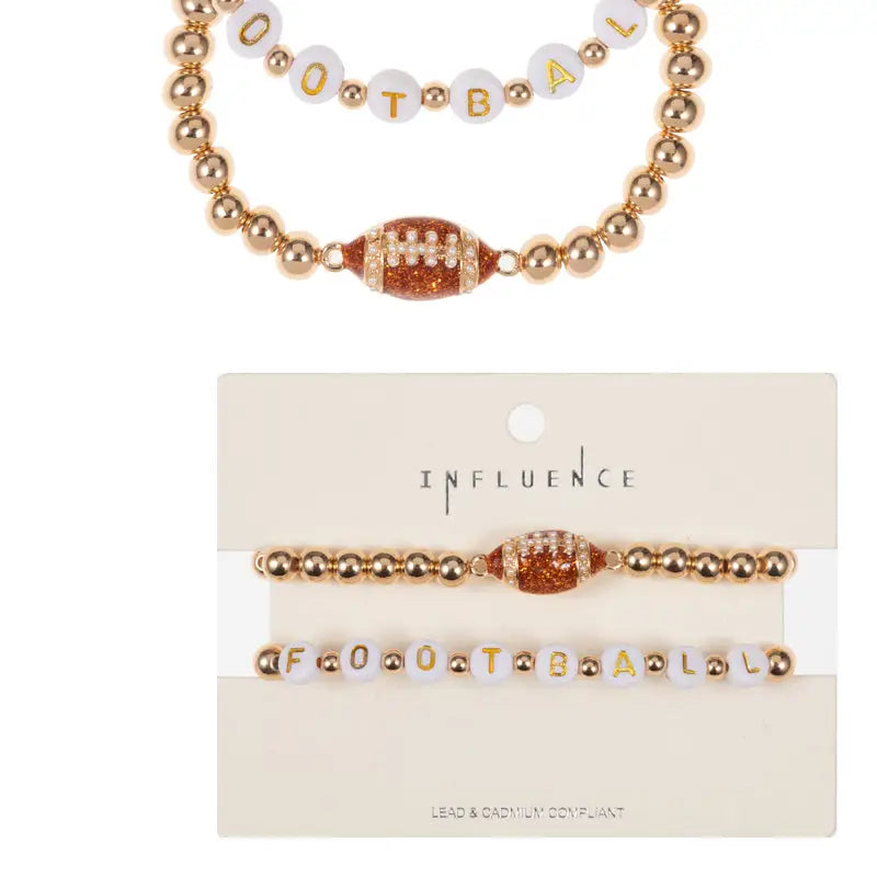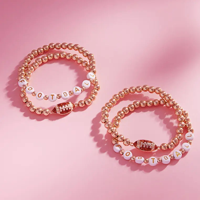 Brown/Gold Gameday Enamel Football Stretch Bracelet Set of 2