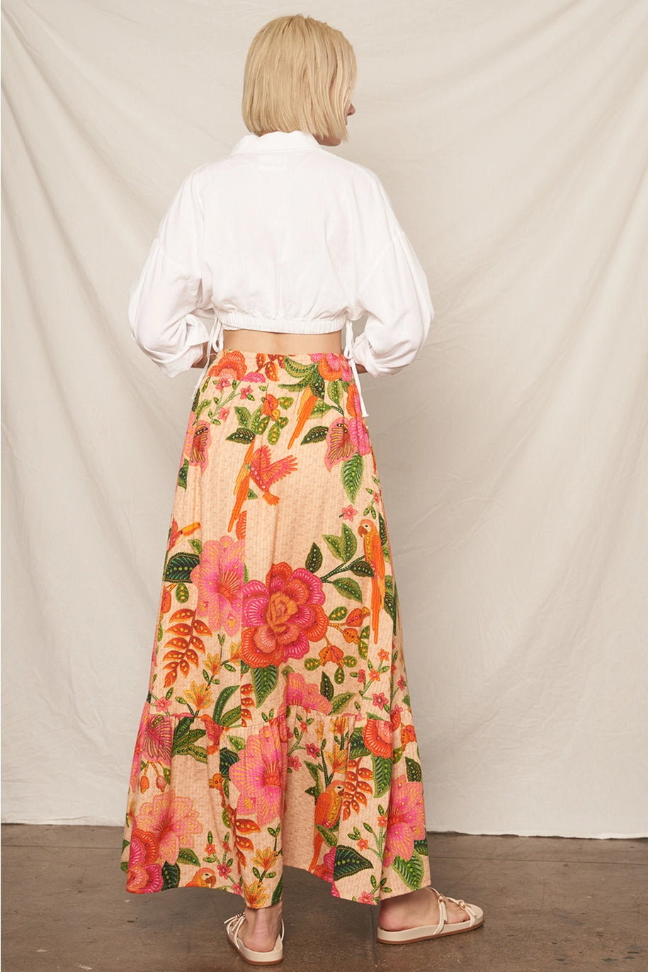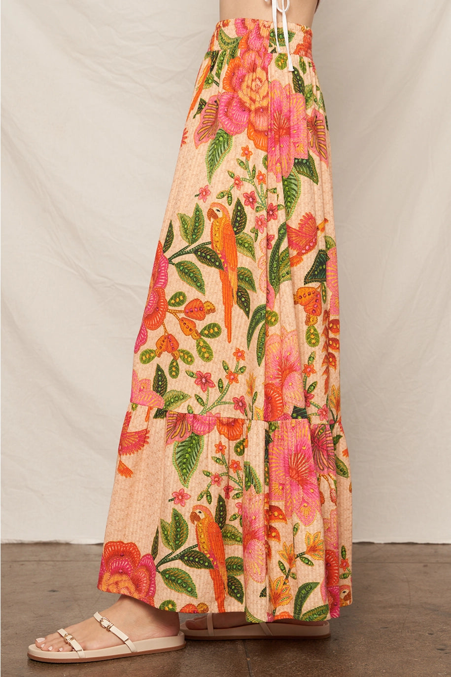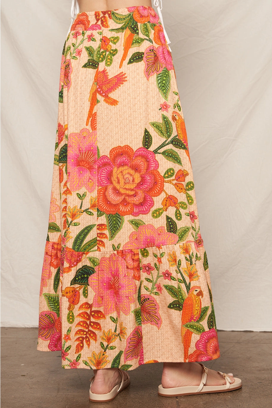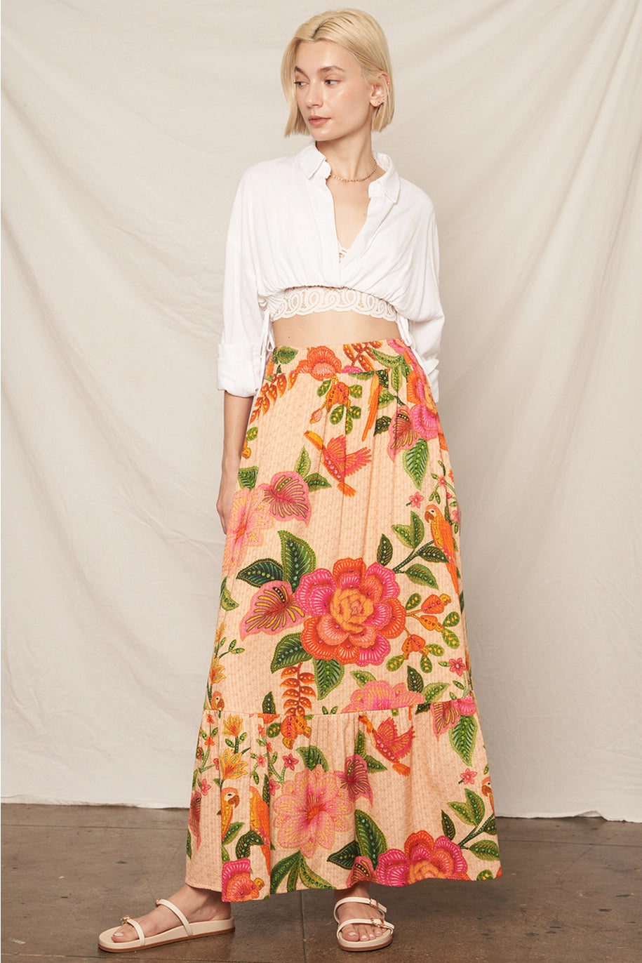 En Creme Peach/Multi Textured Tropical Print Maxi Skirt