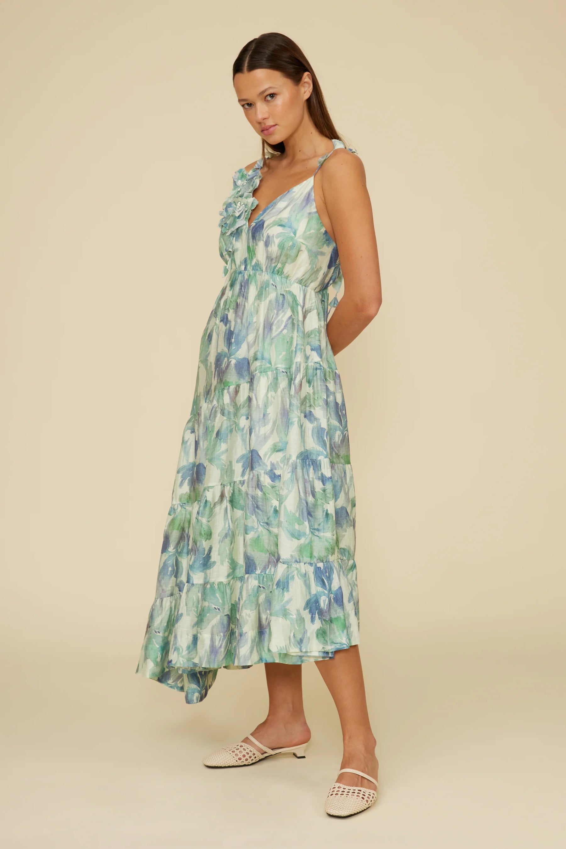 Lucy Paris Turquoise Floral Moret Flared Dress