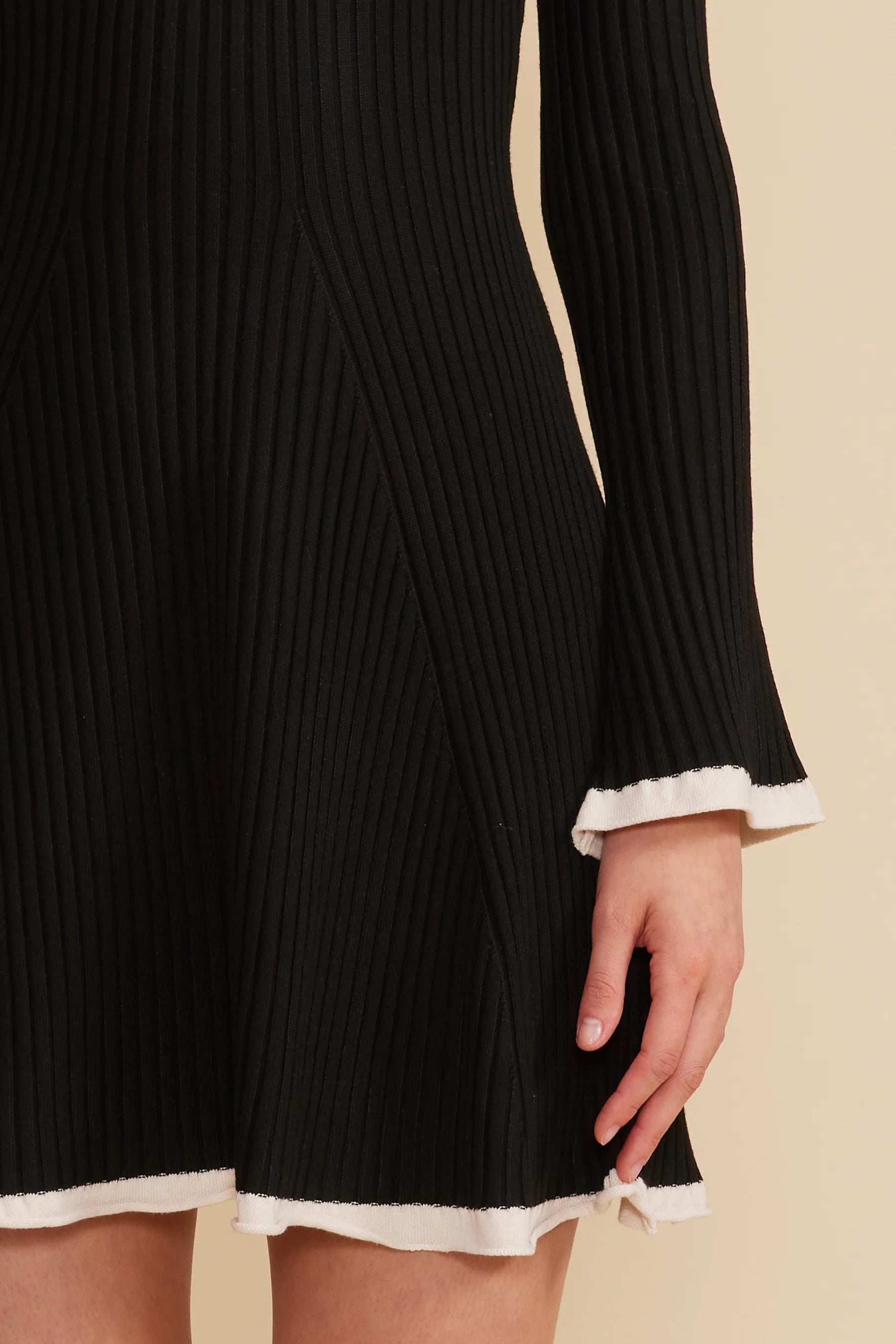 Lucy Paris Black/White Rianne Long Sleeve Mini Dress
